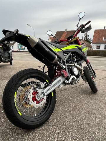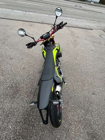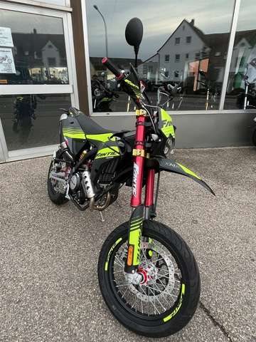 Neufahrzeug vom Vertragshändler mit Werksgarantie, die bei allen Vertragshändlern gültig ist. ____________________________________________ Wir liefern Ihr Motorrad für 79 € bis 50km & 149 € bis 100km (einfache Fahrtstrecke). Über 100 km innerhalb Deutschlandes, ausgenommen der Inseln, für 245€. ______________________________________________ Barzahlungspreis: 5.190,- € -> Modell 2024 inkl. Überführungskosten Sonderfinanzierung auch ohne Anzahlung möglich. Für mehr Informationen oder einer individuellen Beratung kommen Sie gerne persönlich bei uns vorbei oder besuchen Sie uns im Internet. Scherzer GmbH Crailsheimer Str. 14 91555 Feuchtwangen Tel: 09852/67660 MOTOR Homologation: Euro 5 Motor: 1 Zylinder 4-Takt, flüssigkeitsgekühltLeistung :11 kW (15 PS) bei 9.750 U/min Drehmoment: 11,8 Nm bei 6.750 U/min Hubraum: 124,66 cc Bohrung: 52,0 mm Hub:58,7 mm Gemischsteuerung: eine obenliegende Nockenwelle, 4 Ventile, variable Steuerzeiten Einspritzung: Drosselklappe ø30 mm Starter: Elektrisch Getriebe: 6-Gang Kupplung: Mehrscheibenölbad, Anti-Hopping Auspuff: ARROW Komplettanlage Verbrauch: 1,8 l/100 km CO2 Emission: 43 g/km FAHRWERK Rahmen: Perimeter CrMo-Stahlrohr Rahmenheck: Stahlrohr, demontierbar Schwinge: Stahlrohr, progressiv angelenkt Bereifung: 100/80-17, 130/70-17 Felgen: Aluminium, schwarz eloxiert Bremsen: Wave-Scheibe ø320 mm - Wave - Scheibe ø220 mm, CBS Gabelbrücken: Aluminium geschmiedet Federung vorne: FANTIC ø41 mm USD Gabel Federung hinten: FANTIC FRS 125 Federbein Federvorspannung einstellbar Lenker: ø22 mm Stahlrohr ABMESSUNGEN / DIMENSIONEN Länge: 2110 mm Sitzhöhe: 880 mm Radstand: 1435 mm Gewicht fahrbereit: 119 kg Tankinhalt: 7,5 l