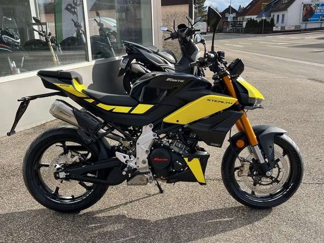 Neufahrzeug vom Vertragshändler mit Werksgarantie, die bei allen Vertragshändlern gültig ist. ____________________________________________ Wir liefern Ihr Motorrad für 79 € bis 50km & 149 € bis 100km (einfache Fahrtstrecke). Über 100 km innerhalb Deutschlandes, ausgenommen der Inseln, für 245€. ___________________________________ Barzahlungspreis: 5.290 € zzgl. 150€ Nebenkosten Sonderfinanzierung auch ohne Anzahlung möglich. Für mehr Informationen oder einer individuellen Beratung kommen Sie gerne persönlich bei uns vorbei oder besuchen Sie uns im Internet. Scherzer GmbH Crailsheimer Str. 14 91555 Feuchtwangen Tel: 09852/67660 Fantic Stealth 125 ab Ende 2024 für A1/B196 - Minarelli-Motor mit 15 PS und Yamaha-VVA - Wasserkühlung - Benzineinspritzung - 4 Ventilen und variabler Einlassventilsteuerung durch 2 unterschiedliche Nockenprofile (von Yamaha VVA) - 15 PS (11 kW) bei 10.250/min. - 6-Gang-Getriebe - Reifen-Formate: 110/70-17 vorn, 150/60-17 hinten - Gesamtgewicht 129 Kilogramm - 12-Liter-Benzintank - ABS - TFT-Display - Smartphone-Connectivity Irrtümer, Änderungen und Zwischenverkauf vorbehalten!