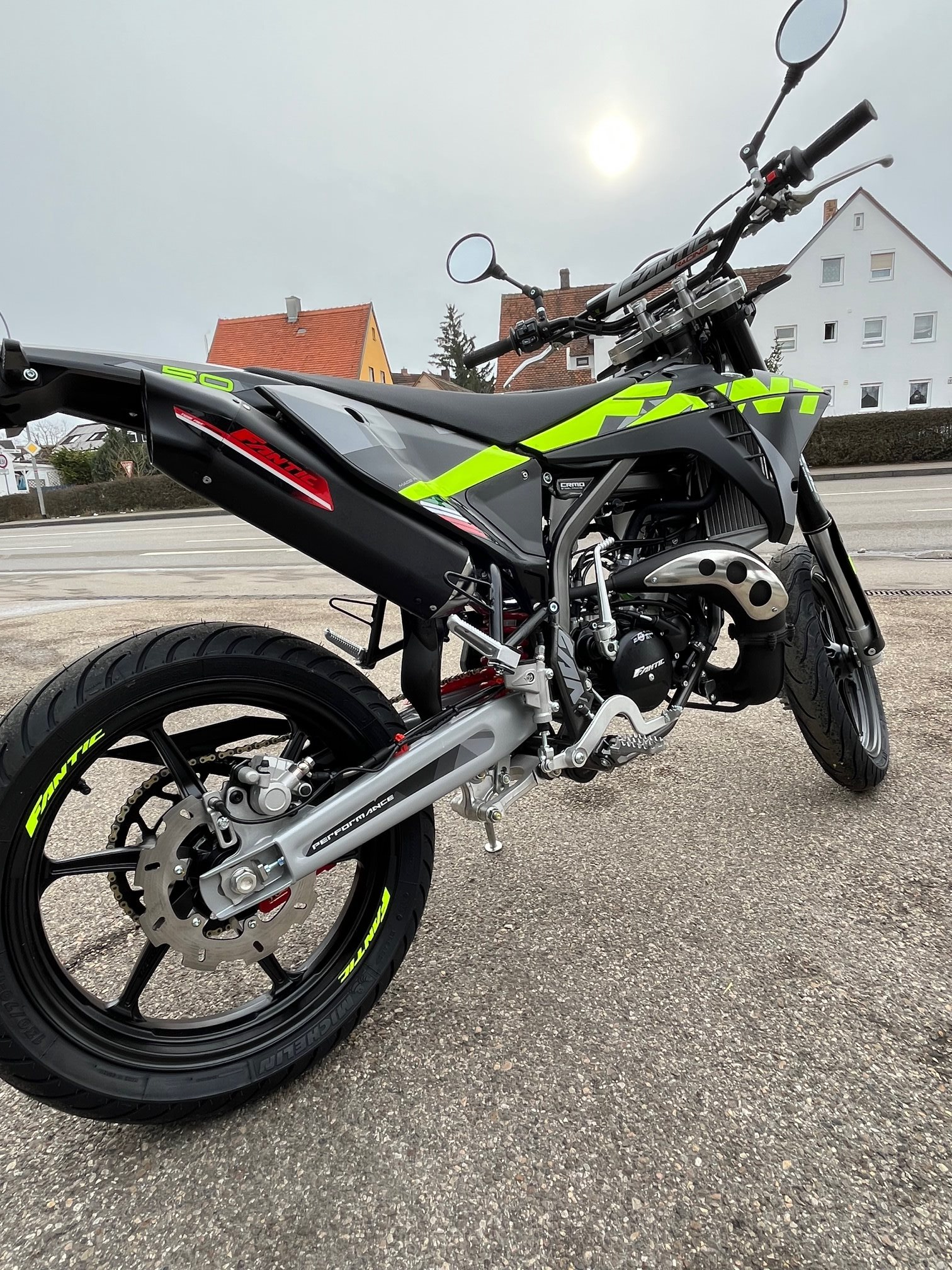 Kein gewöhnlicher 50cc. Der flüssigkeitsgekühlte 2-Takt-Motor mit Euro 5+ Zulassung und elektronischer Zündung bietet die perfekte Balance zwischen Spaß, Sicherheit und Leistung.