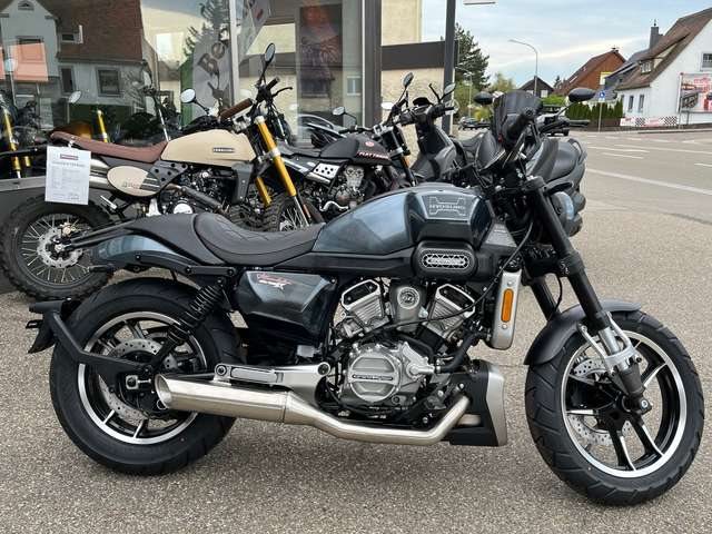 Neufahrzeug vom Vertragshändler mit Werksgarantie, die bei allen Vertragshändlern gültig ist. ____________________________________________ Wir liefern Ihr Motorrad für 79 € bis 50km & 149 € bis 100km (einfache Fahrtstrecke). Über 100 km innerhalb Deutschlandes, ausgenommen der Inseln, für 280€. ______________________________________ Barzahlungspreis: 4.399 € zzgl. 200 € Nebenkosten Sonderfinanzierung auch ohne Anzahlung möglich. Für mehr Informationen oder einer individuellen Beratung kommen Sie gerne persönlich bei uns vorbei oder besuchen Sie uns im Internet. Scherzer GmbH Crailsheimer Str. 14 91555 Feuchtwangen Tel: 09852/67660 Kraftvoll, markant und mit moderner Technik ausgestattet die GV 125 X ABS begeistert mit Dynamik und Charakter. Das auffällige Muscle-Bike-Design mit breitem Tank, markanten Luftfiltern und dem robusten 60°-V2-Motor macht sie zu einem echten Blickfang. Der wassergekühlte 125-ccm-V2-Motor liefert satte 14 PS, die über ein 6-Gang-Getriebe auf die Straße gebracht werden. Dank Upside-Down-Gabel und verstellbarer Federvorspannung bietet die GV 125 X nicht nur eine sportliche Optik, sondern auch ein agiles und stabiles Fahrverhalten. Ob entspannt cruisen oder dynamisch durch die Kurven mit der HYOSUNG GV 125 X ABS bekommt man das Beste aus beiden Welten. Technische Daten Motor: 60°-Zweizylinder-V2-Motor, Viertakt-OHC, 3 Ventile pro Zylinder, 125 ccm, wassergekühlt Max. Leistung: 10,3 kW (14 PS) bei 10.000 U/min Getriebe: 6 Gang Schaltgetriebe Tankinhalt: 14 Liter, ca. 2,5 Liter Reserve Sitzhöhe: ca. 775 mm Radaufhängung (vorne): Upside Down Gabel mit 120 mm Federweg Radaufhängung (hinten): Zweiarmschwinge mit 66 mm Federweg, verstellbare Federvorspannung Bremse (vorne): Scheibenbremse, 4-Kolben-Bremszange, 270 mm Durchmesser Bremse (hinten): Scheibenbremse, 250 mm Durchmesser Reifen (vorne/hinten): 120/80-16 | 150/80-15 Gewicht fahrfertig: 172 kg Abgaswerte: EURO 5+ / Kraftstoffverbrauch (l/100 km) Ø 2,8l CO2 Emissionen: 65g/km Irrtümer, Änderungen und Zwischenverkauf vorbehalten!