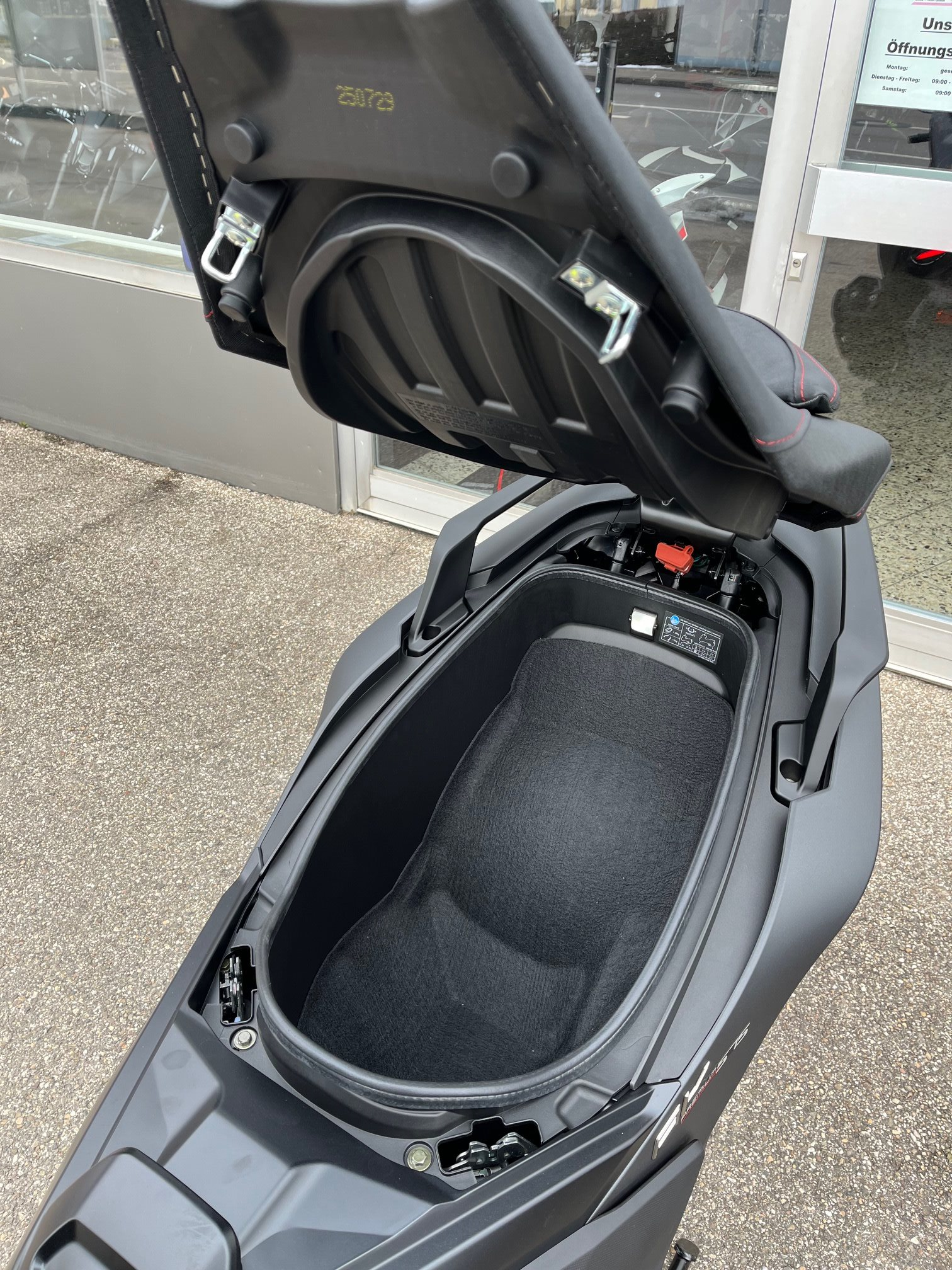 Das LED-Volllicht sorgt für brillante Sicht, das moderne LCD-Display hält alle Infos im Blick. Unter dem Sitz findet ein Integralhelm Platz, für Kleinkram steht ein zusätzliches Ablagefach mit USB-Anschluss bereit.