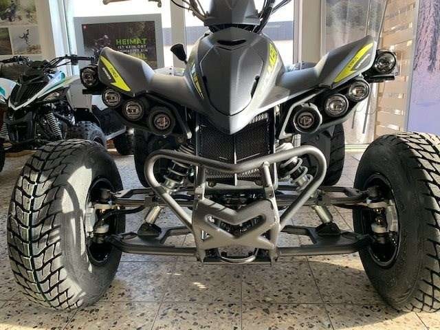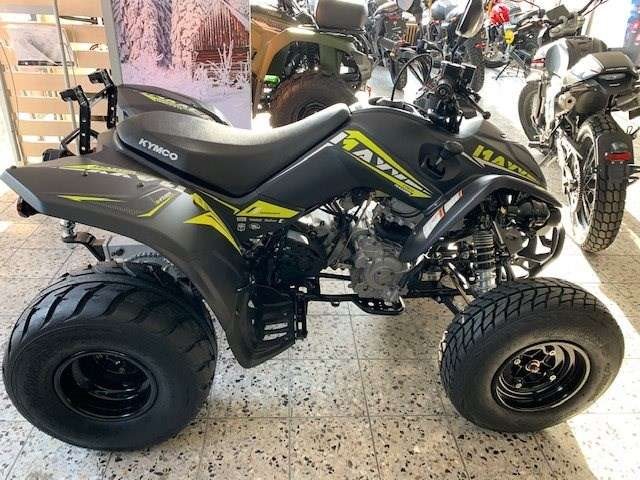 Neufahrzeug vom Vertragshändler mit Werksgarantie, die bei allen Vertragshändlern gültig ist. ____________________________________________ Wir liefern Ihr Motorrad für 65 € bis 50km /- und 119 € bis 100km/ - und 179 € bis 150 km einfache Fahrtstrecke. Über 150 km Preis auf Anfrage! ______________________________________________ Barzahlungspreis: 5.199 € zzgl. 250€ Überführungskosten Sonderfinanzierung auch ohne Anzahlung möglich. Für mehr Informationen oder einer individuellen Beratung kommen Sie gerne persönlich bei uns vorbei oder besuchen Sie uns im Internet. Scherzer GmbH Crailsheimer Str. 14 91555 Feuchtwangen Tel: 09852/67660 Bereit für extrabreit? Dank der extrabreiten Spur und dem agilen Fahrwerk ist beim MAXXER S 300 T ONROAD LOF rasantes Kart-Feeling in der Kurve garantiert. Dazu trägt auch die starke Motortechnik aus der MAXXER 300 Supermoto Serie bei, die maximalen Fahrspaß auf Asphalt bereit hält. Das neue Design spiegelt die explosive Dynamik des Quads perfekt wider: Flacher Body, wuchtige Radabdeckungen in Formel-1-Style, aggressive LED-Rundscheinwerfer mit integrierten Blinkern und freche Farben. Das attraktive Sportgerät mit Anhängerkupplung und Feststellbremse zeigt klar, warum KYMCO die unangefochtene Nummer 1 in der 300er Quad-Klasse ist. Technische Daten Max. Leistung16 kW (21,8 PS) bei 7500 U/min Leergewicht in kg 300 kg (fahrbereit inkl. Fahrer - ohne Fahrer 225 kg)zul. Gesamtgewicht in kg 391 Abmessungen (L, H, B) in mm 1780, 1030, 1215 Tankinhalt in Liter 12,5 Bauart1-Zyl, 4 Takt flüssigkeitsgekühlt 2 Ventile/Zylinder, Vergaser Hubraum in ccm 271 Starter Elektrostarter Kupplung Fliehkraftkupplung Getriebestufenlose Variomatik Federung vorne Doppel A-Arms mit verstellbaren Federbeinen Federung hinten Schwinge mit verstellbarem Federbein Bremse vorne 2 Scheibenbremsen, 180 mm Bremse hinten 1 Scheibenbremse, 220 mm Reifen vorne 21x7-10 Reifen hinten 20x11-9 Irrtümer, Änderungen und Zwischenverkauf vorbehalten!