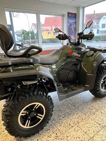 Neufahrzeug vom Vertragshändler mit Werksgarantie, die bei allen Vertragshändlern gültig ist. ____________________________________________ Gerne liefern wir Ihnen Ihr Quad für 250,00 Euro innerhalb Deutschlands ausgenommen der Inseln. ______________________________________________ Barzahlungspreis: 8.699,90 € zzgl 360€ Überführungskosten Sonderfinanzierung auch ohne Anzahlung möglich. Für mehr Informationen oder einer individuellen Beratung kommen Sie gerne persönlich bei uns vorbei oder besuchen Sie uns im Internet. Scherzer GmbH Crailsheimer Str. 14 91555 Feuchtwangen Tel: 09852/67660 XWolf 700L EXPLORE YOUR WAY Entdecke deinen Weg mit dem Loncin XWolf 700L. Dieses ATV setzt nicht nur neue Standards, sondern definiert eine neue Dimension an Performance, Design und Zuverlässigkeit. Technische Daten: Motor: Benzinbetrieben, 1 Zylinder, 4-Takt Höchstgeschwindigkeit: 60 km/h (T3b) 95 km/h (LOF) 90 km/h (T3b ABS) Hubraum: 686 cm Leistung (max.): 32 kW / 5.500 U./Min. Kühlung: Flüssigkeitskühlung Zündung: Elektronische Zündung (CDI) Starter: Elektrostarter Getriebe: CVT Antrieb: 2WD/4WD EPS (elektrische Servolenkung): Ja Vorderes Differential elektrisch sperrbar: Ja Bremse vorne: Scheibenbremse (hydraulisch) Bremse hinten: Scheibenbremse (hydraulisch) Bremsassistenzsystem: ABS (nur T3b-ABS-Modelle) Feststellbremse: Ja Federung vorne: Hydraulisch gedämpftes Federbein Federung hinten: Hydraulisch gedämpftes Federbein Bereifung vorne: 26 x 9.00 R12 Bereifung hinten: 26 x 10.00 R12 Felgen: Aluminium Sitze: 2 Beleuchtung: LED Instrumente: Digital Tankinhalt (ca.): 21 l CO2-Emission: 1.333 g/kWh (T3b) Ausstattung: Lenkerschloss: Ja Handprotektoren: Ja Rückenlehne: Ja Gepäckträger: Vorne Hinten Low & High, Untersetzung: Ja Seilwinde vorne: Ja Anhängerkupplung: Ja Anhängelast (max.): 800 kg (gebremst) Anschlüsse: 12V-Anschluss: Ja USB: USB zum Laden externer Geräte (5V) Maße. Länge: 2.220 mm Breite: 1.190 mm Höhe: 1.285 mm Radstand: 1.480 mm Irrtümer, Änderungen und Zwischenverkauf vorbehalten!