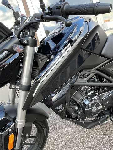 Neufahrzeug vom Vertragshändler mit Werksgarantie, die bei allen Vertragshändlern gültig ist. ____________________________________________ Wir liefern Ihr Motorrad für 65 € bis 50km /- und 119 € bis 100km/ - und 179 € bis 150 km einfache Fahrtstrecke. Über 150 km innerhalb Deutschlandes, ausgenommen der Inseln, für 219 €. ______________________________________________ Barzahlungspreis: 3.399 € zuzüglich 270 € Nebenkosten Sonderfinanzierung auch ohne Anzahlung möglich. Für Fragen oder Interesse an anderen Fahrzeugen schauen sie doch einfach gerne mal auf unserer Homepage vorbei : www.scherzer-gmbh.de - Die R125 ABS ist ein leichtes und sportliches Naked Bike der Einstiegsklasse mit neuester Technik. Das scharfe Handling, der leistungsstarke, flüssigkeitsgekühlte Motor und die Upside-Down-Gabel bereiten sowohl Anfängern mit frischem A1 Führerschein als auch erfahrenen Bikern ein aufregendes Fahrvergnügen. Ausgestattet ist das Motorrad mit modernen High Intensity LED-Leuchten und Blinkern für optimale Sicht und Sichtbarkeit. Das FI-System sorgt für eine präzise Kraftstoffzufuhr, verbessert die Gasannahme und reduziert den Kraftstoffverbrauch auf ein Minimum. Das vollfarbige LCD-Display liefert alle relevanten Informationen auf einen Blick. TECHNISCHE DATEN: Motor: flüssigkeitsgekühlter 1-Zylinder-Viertaktmotor mit 4 Ventilen und elektronischer Einspritzung Hubraum: 124,8 ccm Max. Leistung: 11,0 kW (14,96 PS) bei 9500 U/min Max. Drehmoment: 12,0 Nm bei 8500 U/min Getriebe: 6-Gang Schaltgetriebe Antrieb: Kette Abmessungen (LxBxH): 1941 mm x 795 mm x 1070 mm Sitzhöhe: 795 mm Gewicht fahrfertig: 136 kg Tankinhalt: 10 L Reifen (vorne/hinten): 110/70-17 | 140/60-17 Bremse: 1 Bremsscheibe vorne (276 mm) und 1 Bremsscheibe hinten (220 mm) mit ABS Radaufhängung (vorne): 35 mm-Upside-Down-Gabel Radaufhängung (hinten): Zweiarmschwinge mit Zentralfederbein, Federvorspannung verstellbar Abgaswerte: EURO 5 / Kraftstoffverbrauch (l/100 km) Ø 2,3l CO2 Emissionen 52g/km Irrtümer, Änderungen und Zwischenverkauf vorbehalten!