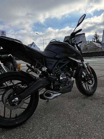 Neufahrzeug vom Vertragshändler mit Werksgarantie, die bei allen Vertragshändlern gültig ist. ____________________________________________ Wir liefern Ihr Motorrad für 65 € bis 50km /- und 119 € bis 100km/ - und 179 € bis 150 km einfache Fahrtstrecke. Über 150 km innerhalb Deutschlandes, ausgenommen der Inseln, für 219 €. ______________________________________________ Barzahlungspreis: 3.399 € zuzüglich 270 € Nebenkosten Sonderfinanzierung auch ohne Anzahlung möglich. Für Fragen oder Interesse an anderen Fahrzeugen schauen sie doch einfach gerne mal auf unserer Homepage vorbei : www.scherzer-gmbh.de - Die R125 ABS ist ein leichtes und sportliches Naked Bike der Einstiegsklasse mit neuester Technik. Das scharfe Handling, der leistungsstarke, flüssigkeitsgekühlte Motor und die Upside-Down-Gabel bereiten sowohl Anfängern mit frischem A1 Führerschein als auch erfahrenen Bikern ein aufregendes Fahrvergnügen. Ausgestattet ist das Motorrad mit modernen High Intensity LED-Leuchten und Blinkern für optimale Sicht und Sichtbarkeit. Das FI-System sorgt für eine präzise Kraftstoffzufuhr, verbessert die Gasannahme und reduziert den Kraftstoffverbrauch auf ein Minimum. Das vollfarbige LCD-Display liefert alle relevanten Informationen auf einen Blick. TECHNISCHE DATEN: Motor: flüssigkeitsgekühlter 1-Zylinder-Viertaktmotor mit 4 Ventilen und elektronischer Einspritzung Hubraum: 124,8 ccm Max. Leistung: 11,0 kW (14,96 PS) bei 9500 U/min Max. Drehmoment: 12,0 Nm bei 8500 U/min Getriebe: 6-Gang Schaltgetriebe Antrieb: Kette Abmessungen (LxBxH): 1941 mm x 795 mm x 1070 mm Sitzhöhe: 795 mm Gewicht fahrfertig: 136 kg Tankinhalt: 10 L Reifen (vorne/hinten): 110/70-17 | 140/60-17 Bremse: 1 Bremsscheibe vorne (276 mm) und 1 Bremsscheibe hinten (220 mm) mit ABS Radaufhängung (vorne): 35 mm-Upside-Down-Gabel Radaufhängung (hinten): Zweiarmschwinge mit Zentralfederbein, Federvorspannung verstellbar Abgaswerte: EURO 5 / Kraftstoffverbrauch (l/100 km) Ø 2,3l CO2 Emissionen 52g/km Irrtümer, Änderungen und Zwischenverkauf vorbehalten!