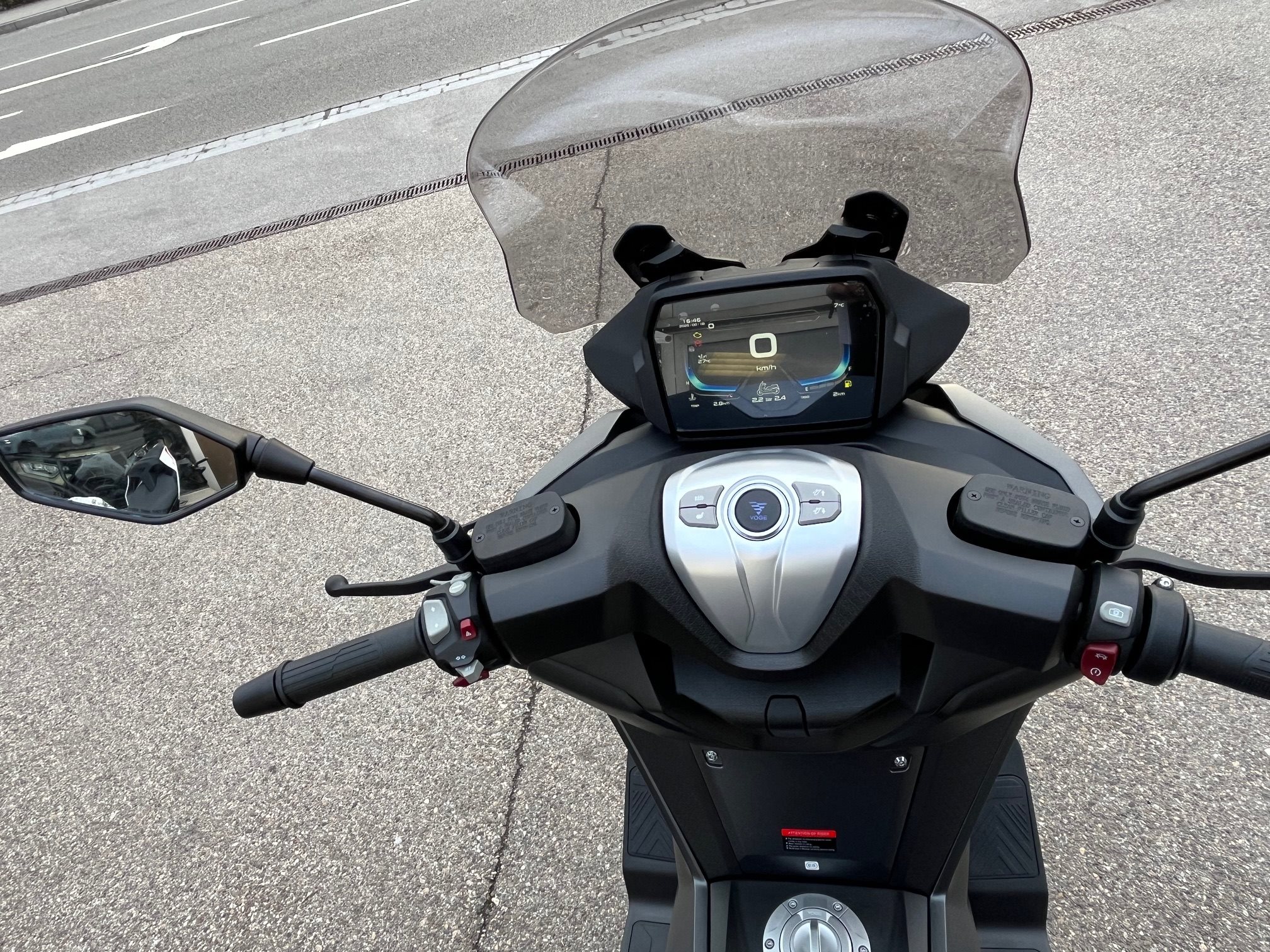Das Premium-Modell überzeugt durch seine umfassende Ausstattung: eine elektrisch verstellbare Windschutzscheibe, beheizte Griffe und Sitzflächen sowie ein großzügiges TFT-Farbdisplay mit Smartphone-Konnektivität bieten modernen Luxus im Alltag. Die LED-Beleuchtung mit integriertem Abbiege- und Tagfahrlicht sorgt dabei nicht nur für optimale Sicht, sondern auch für eine markante Optik.