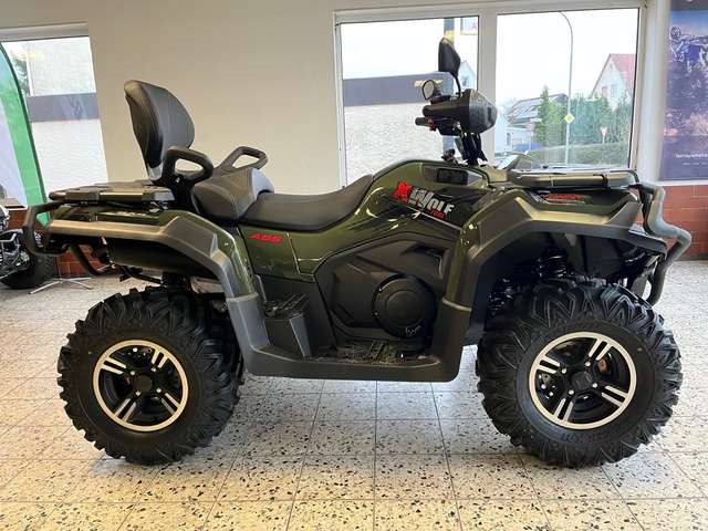 Neufahrzeug vom Vertragshändler mit Werksgarantie, die bei allen Vertragshändlern gültig ist. ____________________________________________ Gerne liefern wir Ihnen Ihr Quad für 250,00 Euro innerhalb Deutschlands ausgenommen der Inseln. ______________________________________________ Barzahlungspreis: 8.699,90 € zzgl 360€ Überführungskosten Sonderfinanzierung auch ohne Anzahlung möglich. Für mehr Informationen oder einer individuellen Beratung kommen Sie gerne persönlich bei uns vorbei oder besuchen Sie uns im Internet. Scherzer GmbH Crailsheimer Str. 14 91555 Feuchtwangen Tel: 09852/67660 XWolf 700L EXPLORE YOUR WAY Entdecke deinen Weg mit dem Loncin XWolf 700L. Dieses ATV setzt nicht nur neue Standards, sondern definiert eine neue Dimension an Performance, Design und Zuverlässigkeit. Technische Daten: Motor: Benzinbetrieben, 1 Zylinder, 4-Takt Höchstgeschwindigkeit: 60 km/h (T3b) 95 km/h (LOF) 90 km/h (T3b ABS) Hubraum: 686 cm Leistung (max.): 32 kW / 5.500 U./Min. Kühlung: Flüssigkeitskühlung Zündung: Elektronische Zündung (CDI) Starter: Elektrostarter Getriebe: CVT Antrieb: 2WD/4WD EPS (elektrische Servolenkung): Ja Vorderes Differential elektrisch sperrbar: Ja Bremse vorne: Scheibenbremse (hydraulisch) Bremse hinten: Scheibenbremse (hydraulisch) Bremsassistenzsystem: ABS (nur T3b-ABS-Modelle) Feststellbremse: Ja Federung vorne: Hydraulisch gedämpftes Federbein Federung hinten: Hydraulisch gedämpftes Federbein Bereifung vorne: 26 x 9.00 R12 Bereifung hinten: 26 x 10.00 R12 Felgen: Aluminium Sitze: 2 Beleuchtung: LED Instrumente: Digital Tankinhalt (ca.): 21 l CO2-Emission: 1.333 g/kWh (T3b) Ausstattung: Lenkerschloss: Ja Handprotektoren: Ja Rückenlehne: Ja Gepäckträger: Vorne Hinten Low & High, Untersetzung: Ja Seilwinde vorne: Ja Anhängerkupplung: Ja Anhängelast (max.): 800 kg (gebremst) Anschlüsse: 12V-Anschluss: Ja USB: USB zum Laden externer Geräte (5V) Maße. Länge: 2.220 mm Breite: 1.190 mm Höhe: 1.285 mm Radstand: 1.480 mm Irrtümer, Änderungen und Zwischenverkauf vorbehalten!