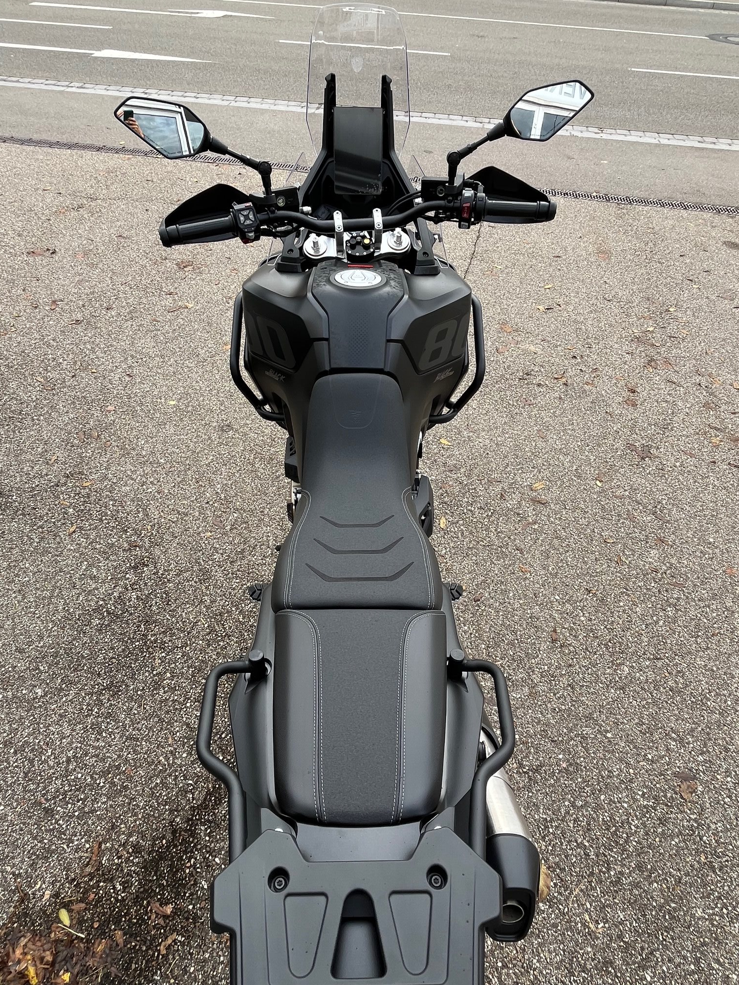 Mit verstellbarem Fahrwerk von KYB, ABS und Traktionskontrolle (beides abschaltbar), beheizbarem Sitz und Griffen sowie 21/18-Zoll-Speichenrädern mit Pirelli-Bereifung ist sie für jedes Abenteuer gewappnet. Die angenehme Sitzhöhe von 860 Millimetern und ein durchdachtes Ergonomiekonzept sorgen dabei für volle Kontrolle im Stehen wie im Sitzen.